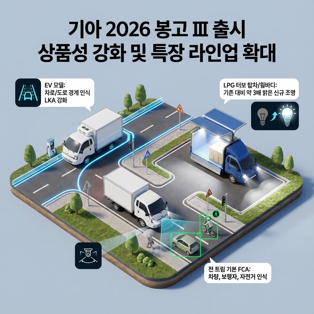 최근 소형 상용차 시장은 다양한 브랜드의 경쟁이 심화되고 있으며, 고객의 요구 또한 더욱 다양해지고 있습니다. 이러한 시장 환경 속에서 기아의 2026 봉고 Ⅲ는 안전성 강화, 편의성 향상, 특장 라인업 확대 등을 통해 경쟁 우위를 확보하고자 노력하고 있습니다.