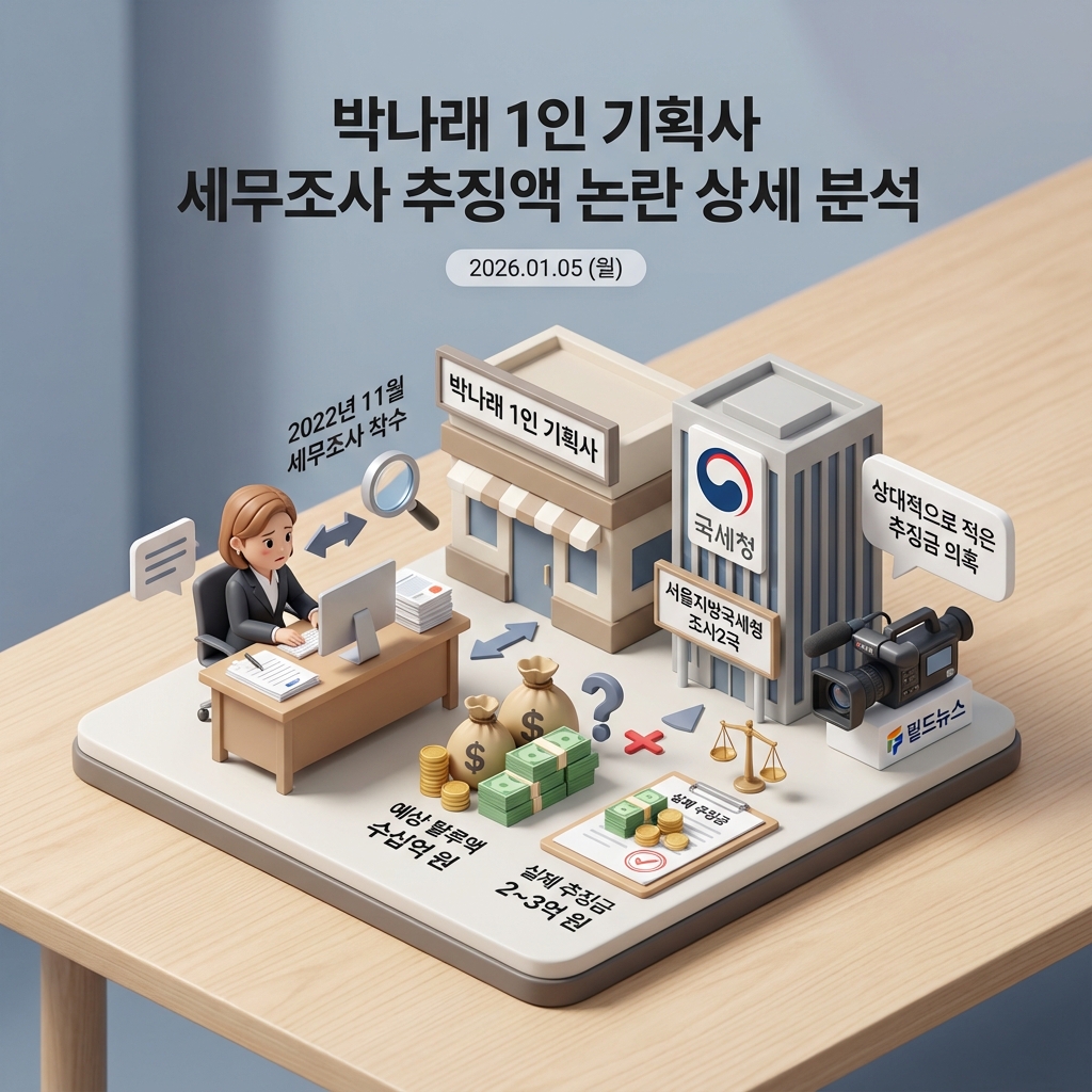 개그우먼 박나래씨가 과거 세무조사 과정에서 상대적으로 적은 추징금을 부과받았다는 의혹이 제기되어 논란이 되고 있습니다. 당초 수십억 원대의 탈루 혐의가 예상되었으나, 실제 추징금은 2~3억 원 수준에 그쳤다는 주장이 나오면서 형평성 논란이 불거지고 있습니다. 본문에서는 관련 내용을 자세히 분석하고, 국세청의 조사 과정과 쟁점 사항을 심층적으로 다루겠습니다.