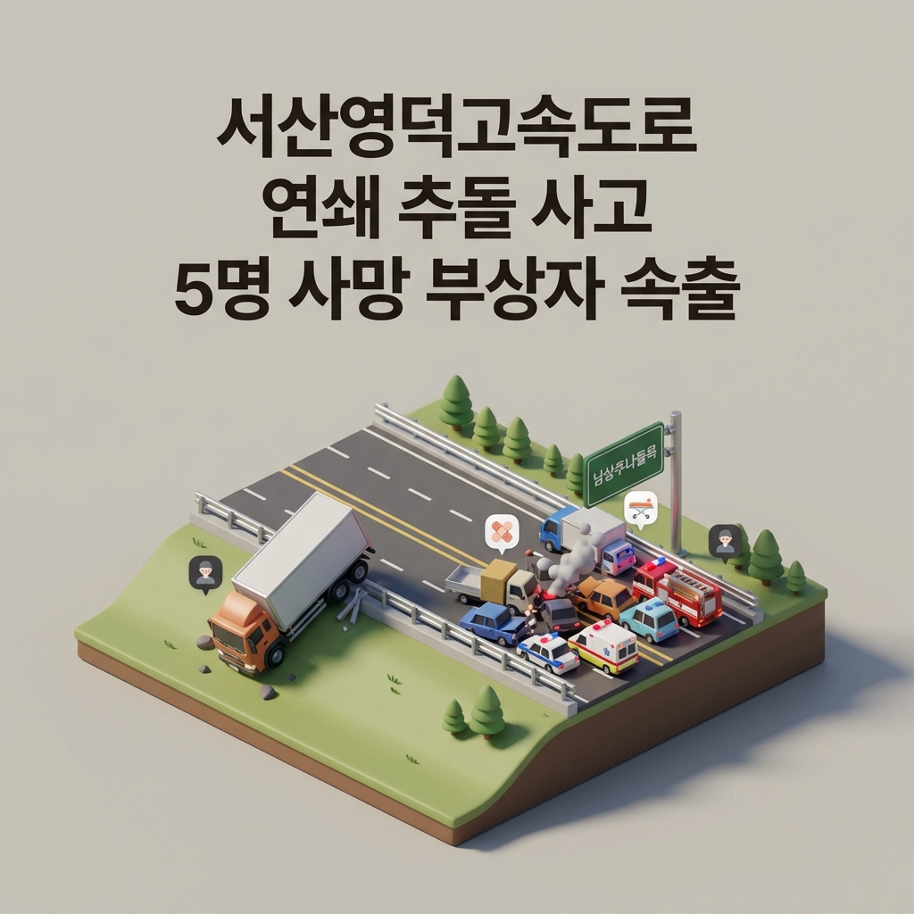2026년 1월 10일 오전, 서산영덕고속도로 남상주 인근에서 연쇄 추돌 사고가 발생하여 안타깝게도 5명의 사망자가 발생했습니다. 사고는 오전 6시 10분경부터 7시 2분경까지 잇따라 발생했으며, 화물차, SUV, 승용차 등 여러 차량이 연루되었습니다. 경찰과 소방당국은 정확한 사고 원인을 조사 중이며, 블랙아이스로 인한 미끄럼 사고 가능성에 무게를 두고 있습니다.