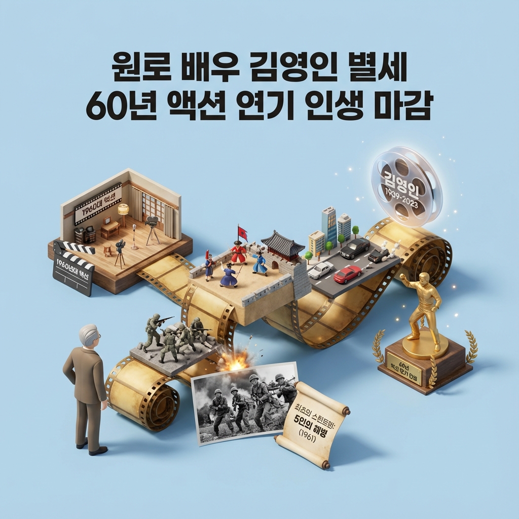 60여 년간 한국 액션 영화와 드라마 현장을 지켜온 원로 배우 김영인 님이 2026년 1월 4일 오전 6시 55분 별세했습니다. 향년 만 82세로, 한국 영화계에 큰 별이 졌습니다.