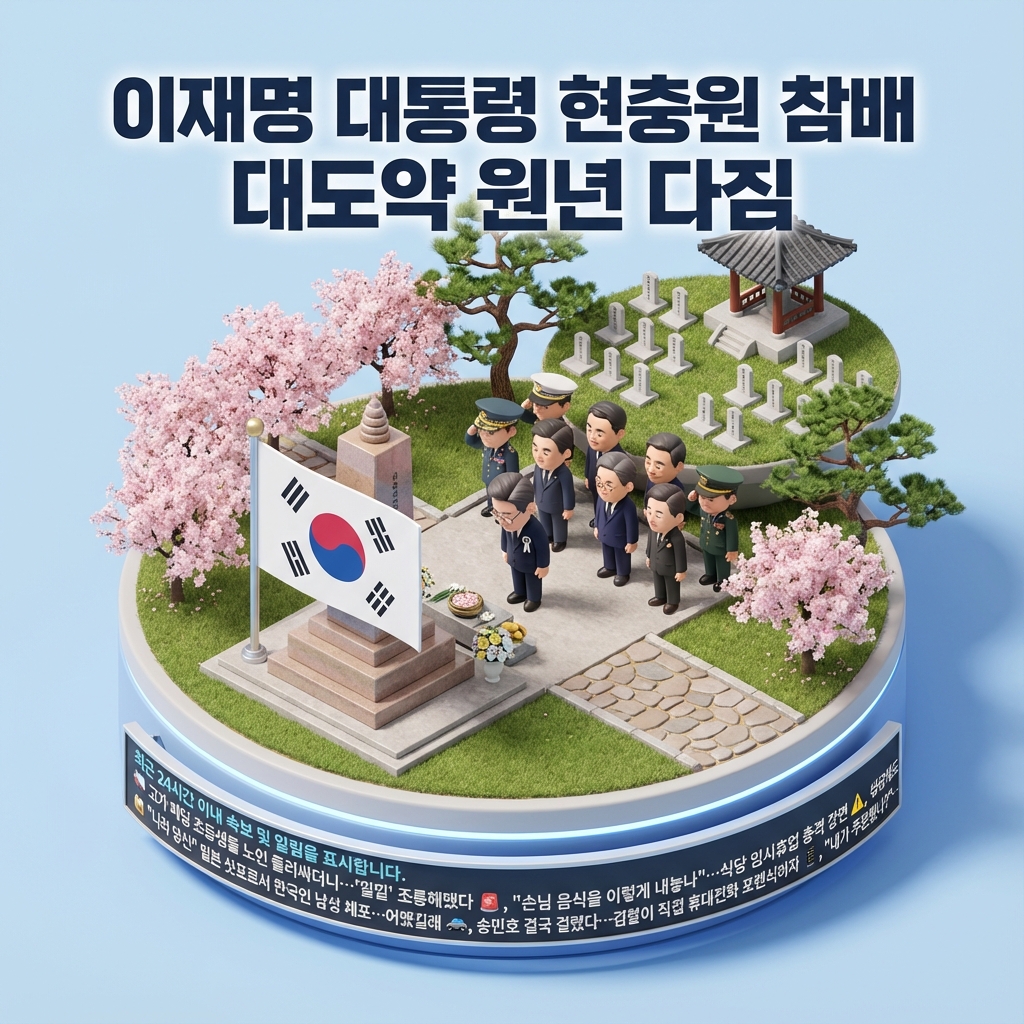 이재명 대통령이 병오년 새해를 맞아 국립서울현충원을 참배하며 2026년 공식 일정을 시작했습니다. 이번 참배에는 청와대 참모진과 국무위원들이 동행했으며, 순국선열과 호국영령을 기리는 헌화와 분향, 묵념이 진행되었습니다. 이 대통령은 “대도약 원년, 국민과 함께 열겠다”는 신년 메시지를 발표했습니다.