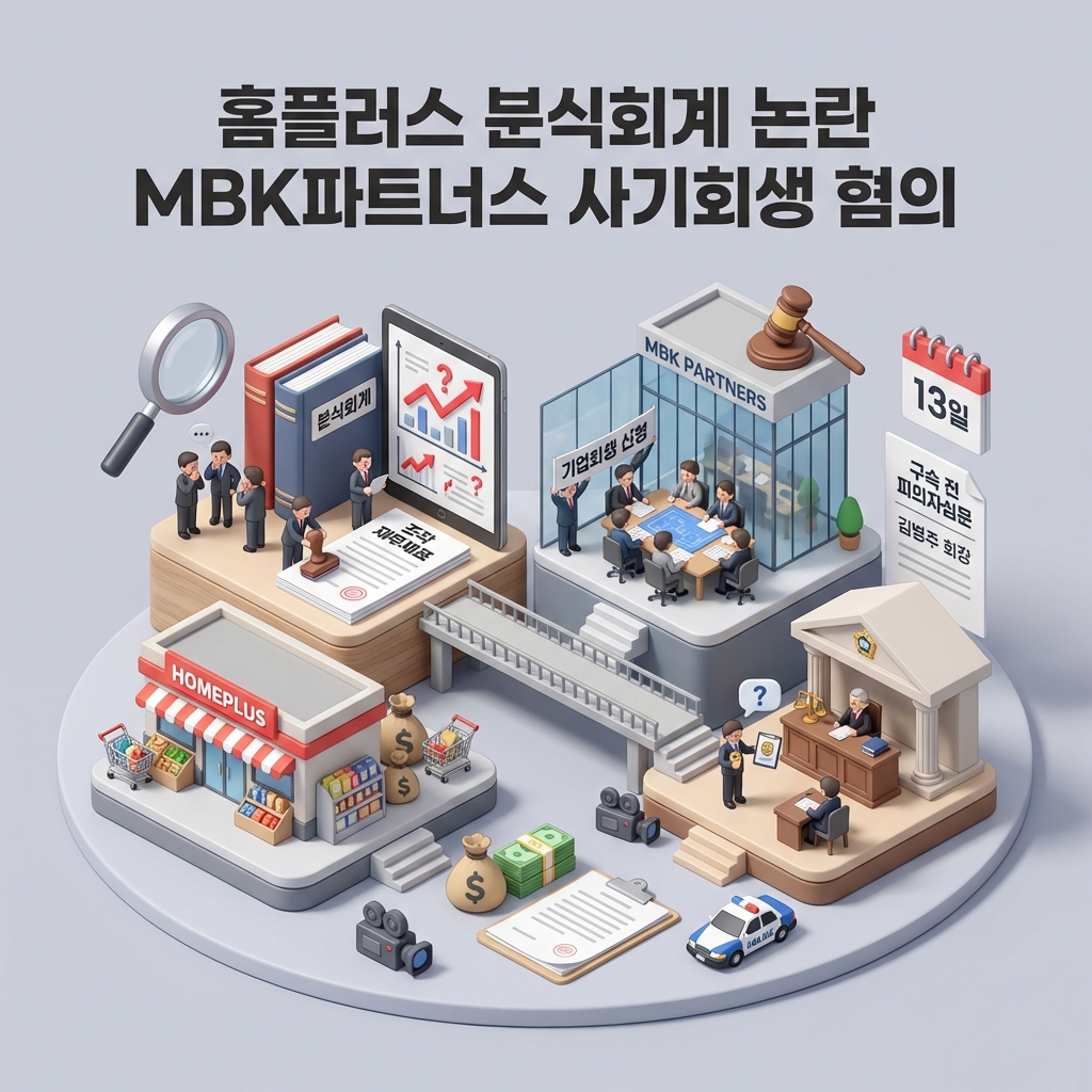 이번 사건의 핵심은 홈플러스가 약 1조 원이 넘는 분식회계를 저지르고, 이를 통해 법원에 회생을 신청했다는 혐의입니다. 검찰은 김병주 회장과 김광일 MBK 부회장 등 경영진에 대해 특정경제범죄가중처벌법상 사기 및 자본시장법 위반, 채무자회생법상 사기회생 혐의를 적용하여 구속영장을 청구했습니다. 법원은 1월 13일 오후 1시 30분 김 회장 등에 대한 영장실질심사를 진행할 예정입니다.
